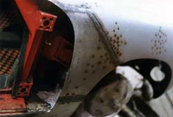 左の写真は左フェンダー部ですが錆びたところを